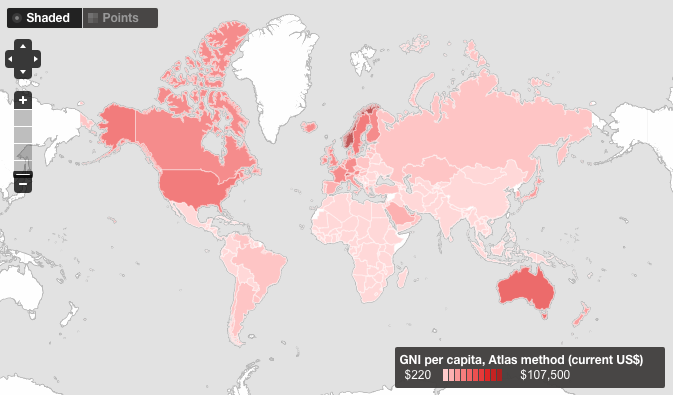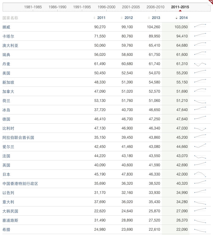 以下是按图表集法衡量的人均国民总收入(GNI)(现价美元),比GDP人家小国当然比不过我们,但是人均的话就秒杀我们了,实际上我们都知道,人均的数据对人民生活水平才更有意义。