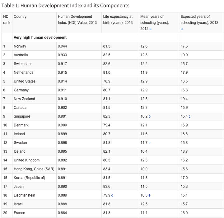 可以看到,前五有仨是北欧主要国家,而美国被挤到第六。
