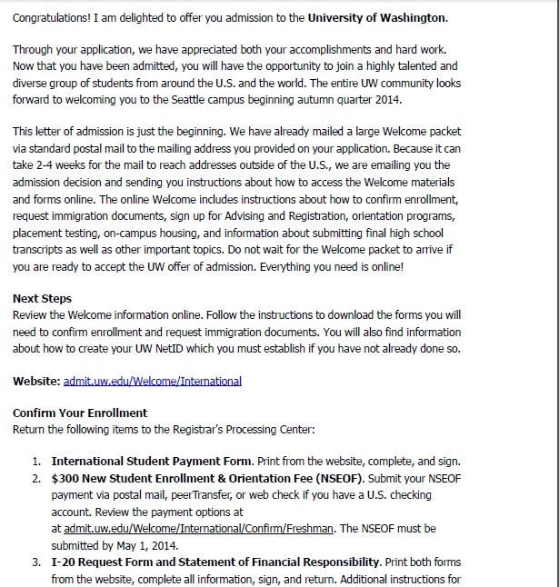 恭喜朱同学获得华盛顿大学西雅图分校的录取。
