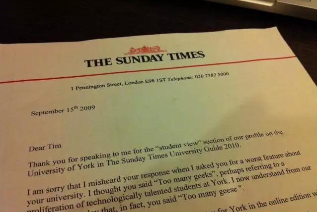 感谢你在2010年星期日泰晤士报大学指南 “学生观点”专栏接受我的采访。