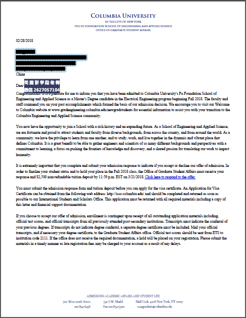 哥伦比亚大学、宾夕法尼亚大学、康奈尔大学、纽约大学(带奖学金)、南加州大学、波士顿大学、加州大学圣地亚哥分校等名校的EE硕士