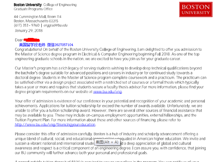 录取学校:波士顿大学MS in Electrical & Computer Engineering