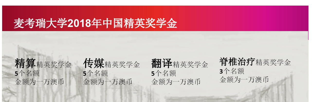 2018年麦考瑞大学推出全新奖学金计划,针对精算,传媒,翻译和脊椎治疗四大精英课程。