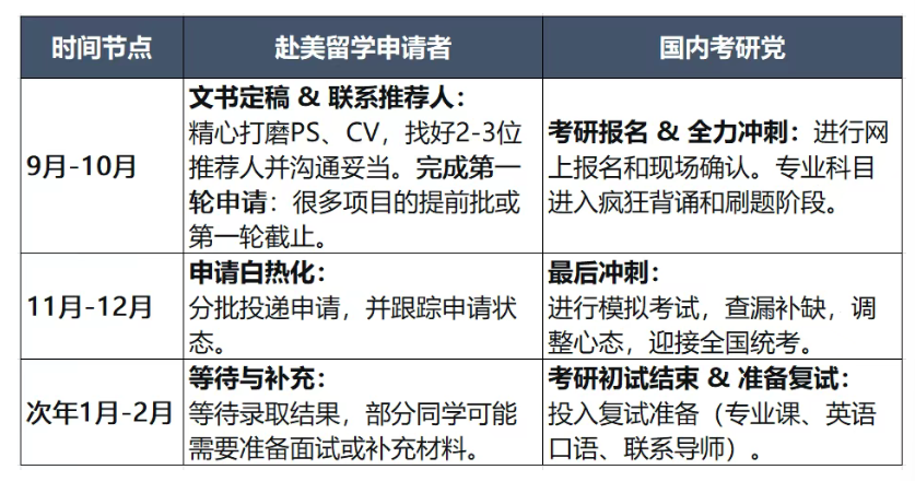 在大三到大四上学期这个关键窗口期,如果同学们又想试试考研,又想用留学给自己多一些选择,那可以考虑双线作战,但提前说明——想要拥有选择的主动权,这一年会有一些辛苦哦~