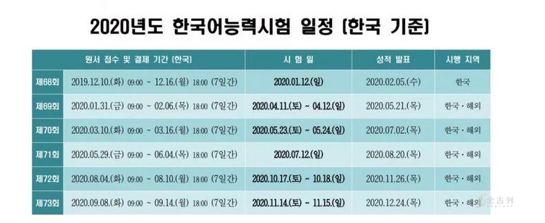 韩国报名: 2020.1.31日9:00-2.6日18:00
