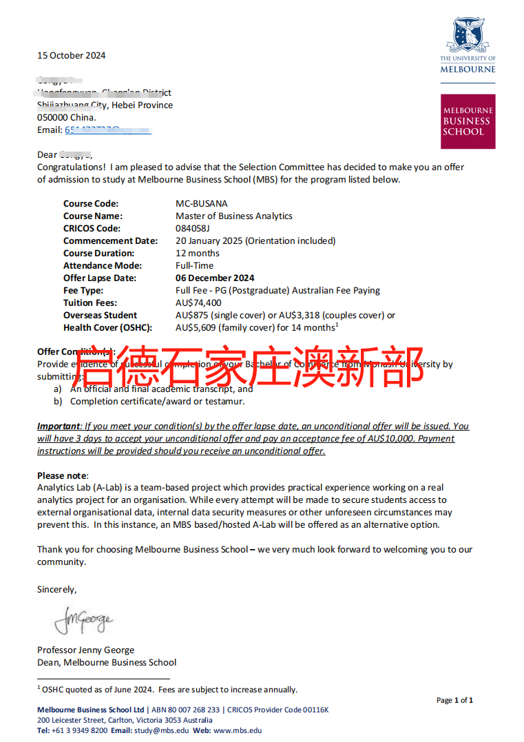 最终在大三毕业2024年11月之前拿到了墨尔本大学含金量高 ,