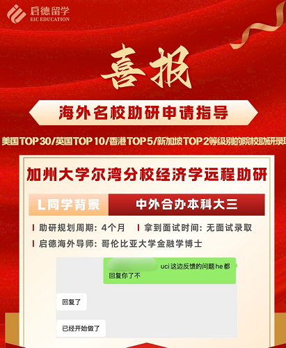 恭喜启德中外合办本科大三L同学收获加州大学尔湾分校经济学方向远程助研offer!