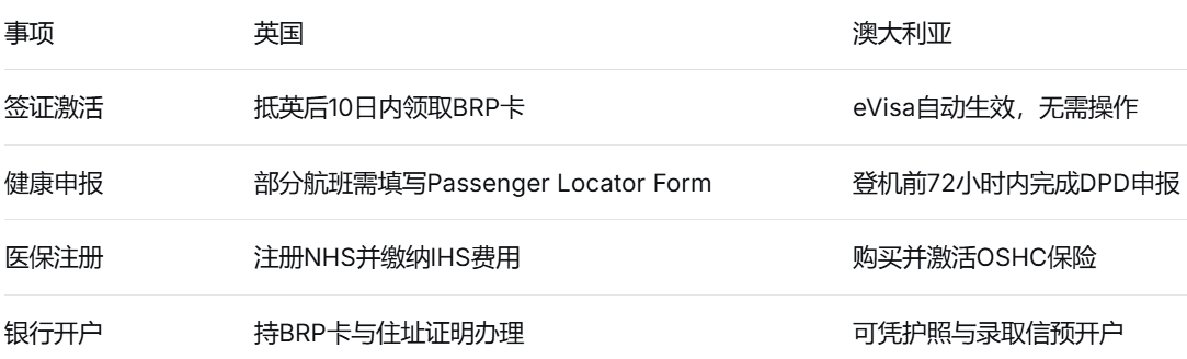 三、英澳入境流程重点对比