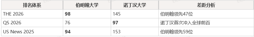 - 诺丁汉大学则排在第145位。两者同属英国罗素大学集团成员,但伯明翰大学在THE评估体系中整体表现更优,尤其在研究引用率、产业收入转化及国际视野指标上具备明显优势。