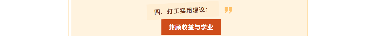 4. 牢记核心原则:学业永远是首要目标!打工需以不影响课程学习、考试进度为前提,合理规划时间精力,切勿本末倒置。