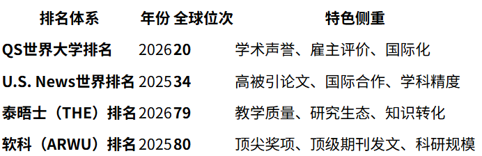 - 软科(ARWU):第80名(聚焦硬核学术产出)