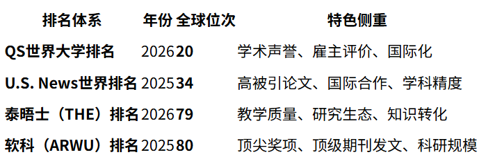 - 软科(ARWU):第80名(聚焦硬核学术产出)