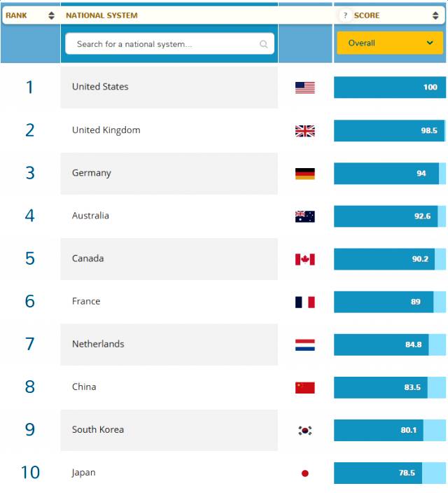 QS比较了全球50个国家及地区的高等教育体系,选出美国是全球最佳的国家,第2位和第3位分别是英国和德国,加拿大名列第5,中国第8,香港则排20,台湾排17。