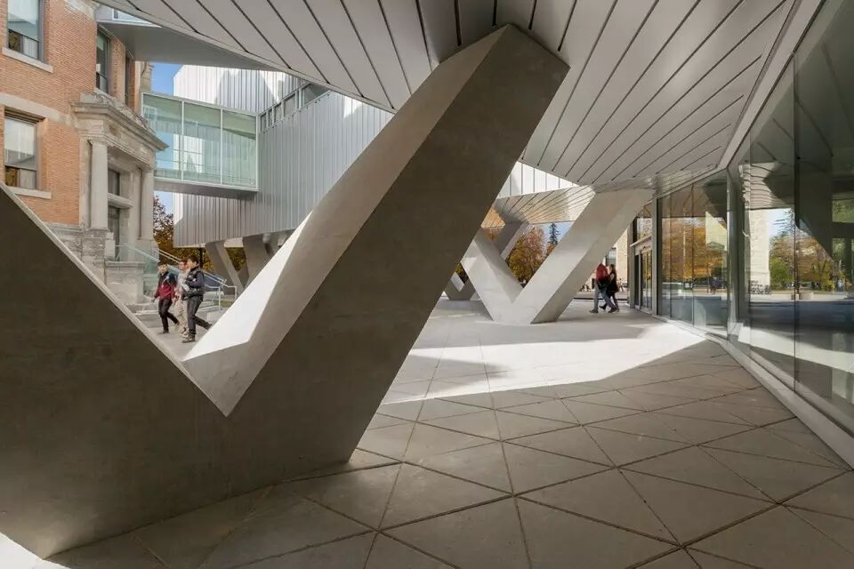 穿插在ARTlab与Tache Hall间的两座空中廊桥连通了建筑的上层空间,而在地下,建筑则与校园地下步行系统相连接,保障学生们在温尼伯寒冷冬季的安全和舒适。
