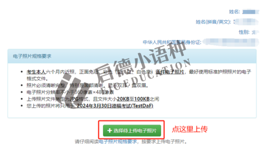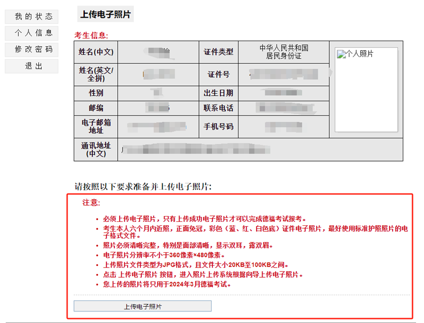 考生需要再次确认信息是否准确,确认完毕后先留意照片要求再点击上传电子照片~~~