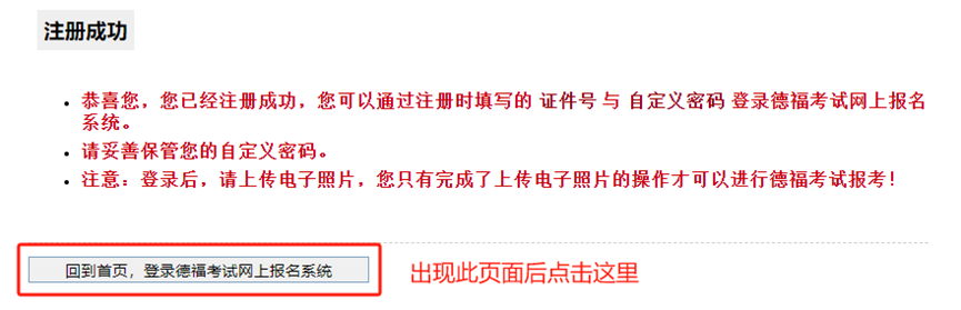 上传成功后即注册成功,确认信息无误后等待开放考位预定通道即可。