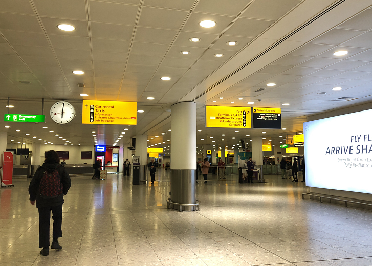 温馨提示:希思罗机场是90%留学生飞往英国选择的落地机场,共5个航站楼。取完行李后出口方向有很多接机公司的会举牌接机,有几个重要标志性的“接头”地点,非常好找(我要附图了)