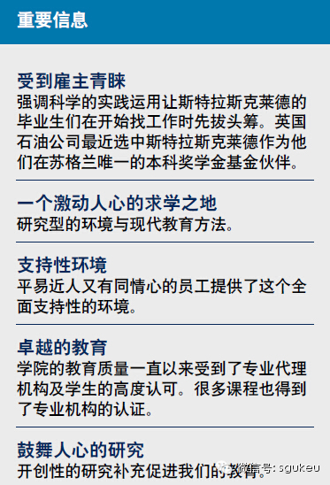 斯特拉斯克莱德大学(University of Strathclyde)位于苏格兰格拉斯哥市中心,在过去的连续三年中,斯特拉斯克莱德大学在最负盛名的泰晤士高等教育奖项获得出色成绩,曾被评为2012-13英国年度大学。