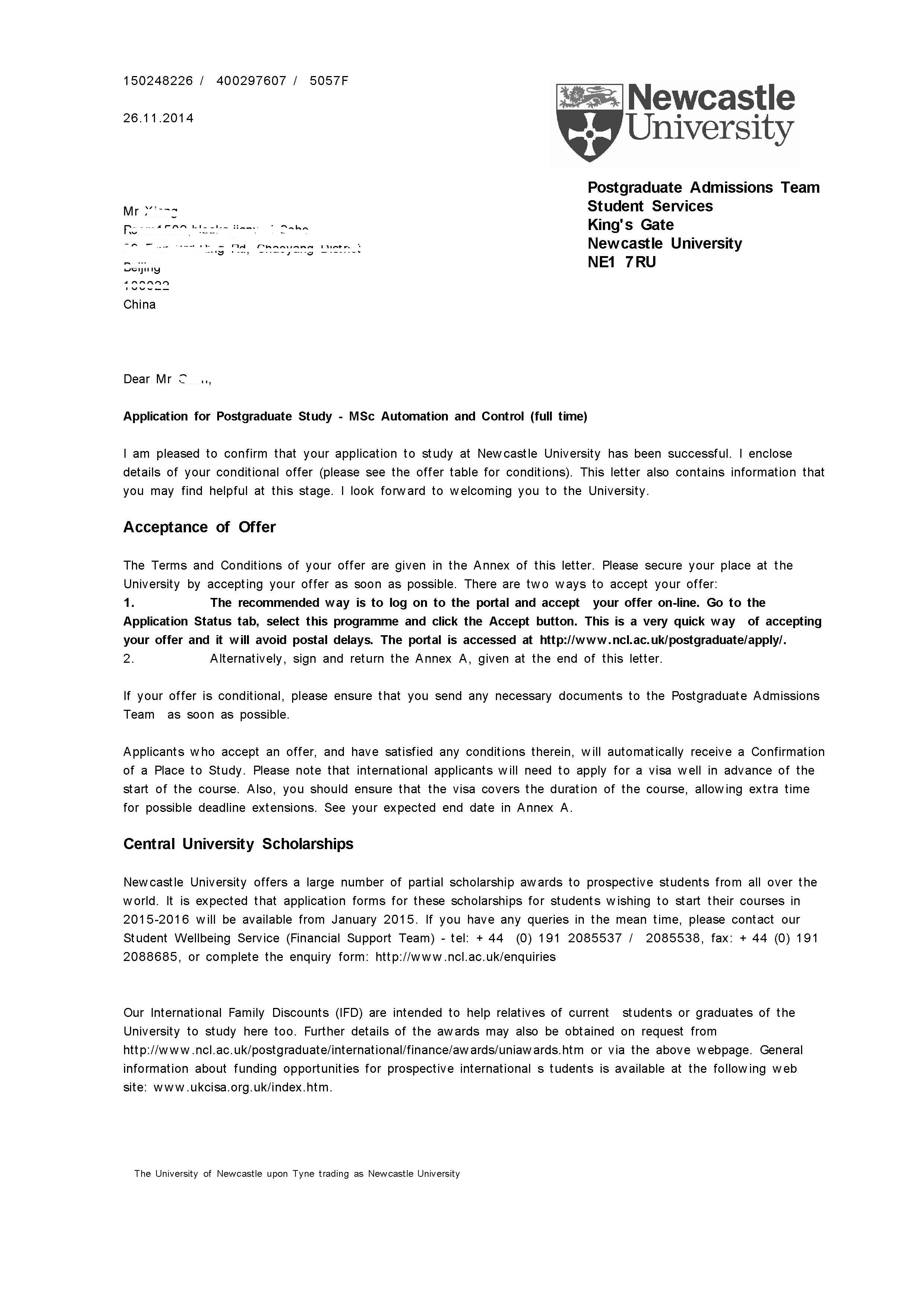 启德每年接受的外地学生占据整个学生比例的百分之40. 这也要大力感谢如今通讯如此发达的社会了。 于是我们电话,QQ,微信多方进行沟通,最终敲定了留学方案。我也为他规划好了接下来的一年各个阶段需要准备的事情,以及明确各个申请节点。X同学也极为配合,在一周内就准时完成了填写信息表,准备材料的工作。收集上来材料后,我也立即进行转案工作,及时向我们专业的文案老师交接了该学生的情况。 启德文案的办公效率以及服务质量在业内都享有盛名,现在进入申请的中后期了,对于现在来做申请的学生,文案老师都是一周完成文书递交申请。11月中旬我们已经全部递交出去申请了。不到两周,纽卡斯尔和拉夫堡的offer就接踵而来了,喜悦的同时,X也在准备雅思考试,争取能尽快拿到UO。相信诺丁汉和谢菲尔德的offer也会如期而至的。