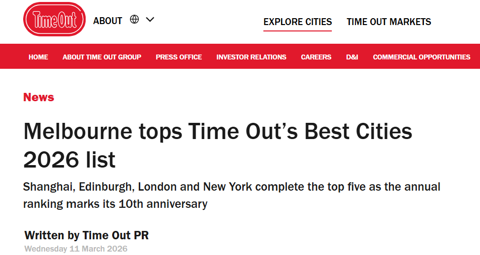 2026全球最佳城市榜单出炉,墨尔本排名第一!