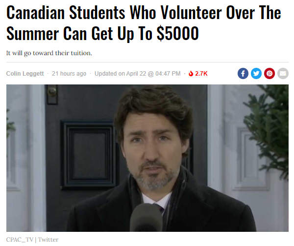 除此之外,加拿大政府还宣布一项高达$5,000加元的补贴将以学费援助的形式提供给暑期自愿协助抗疫行动的学生。