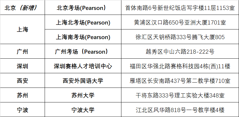 8月新增北京机考中心和深圳赛格人才培训中心2个机考考点及15个纸笔考试考点,提供各类雅思考试服务,考点名单及提供考试类别详见下表: