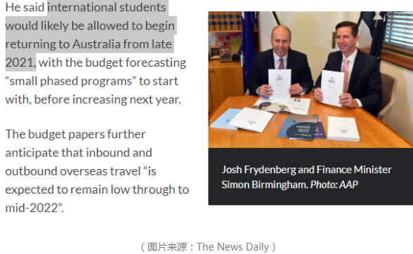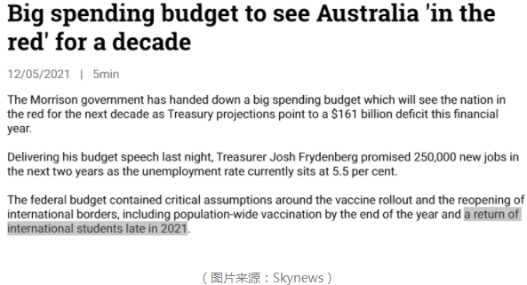 澳洲2021-2022财年的预算于5月11日晚出炉,新的预算案中透露2021年底可能优先让一部分留学生返澳,并在2022年逐步增加。