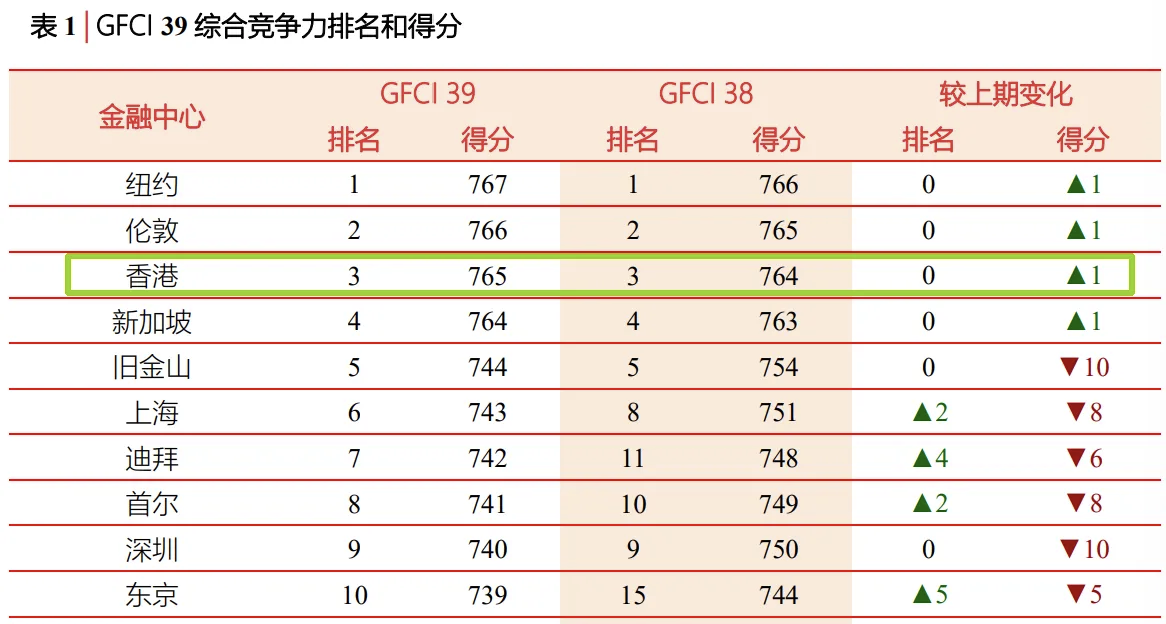 第39期全球金融中心指数报告,中国香港在全球137个金融中心总排名第三。
