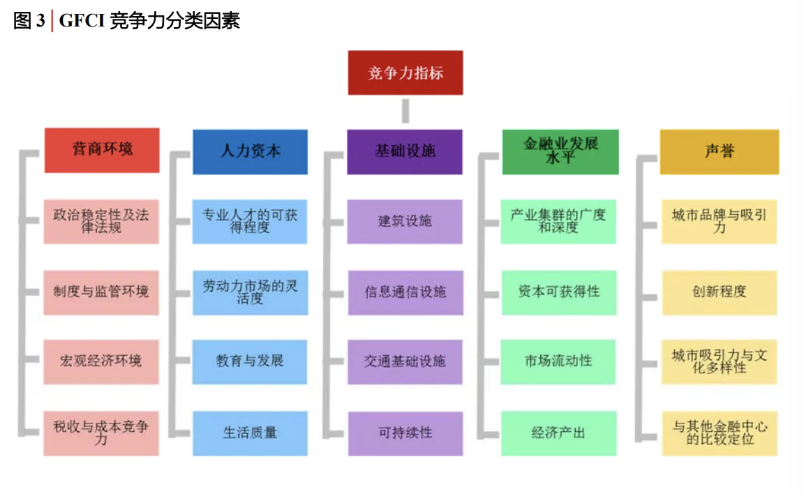 排名指标分为五大类,分别为营商环境、人力资本、基础设施、金融业发展水平及声誉。