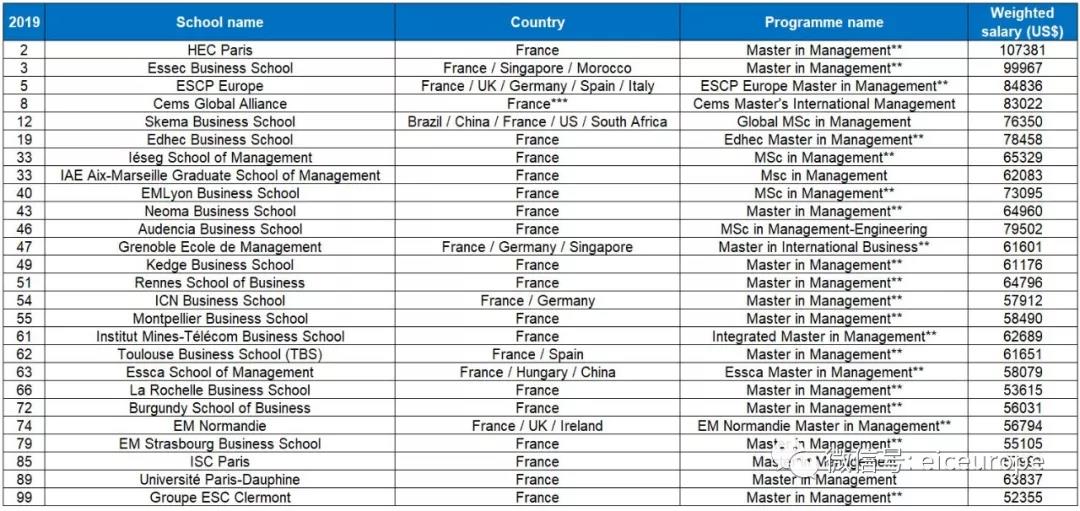 从总数来说,今年法国院校共有26所院校上榜,院校数量超过上榜的英国院校(17所),是上榜院校数量最多的国家。榜单前5位有3所法国高商,有力地说明了法国商学院的卓越实力。