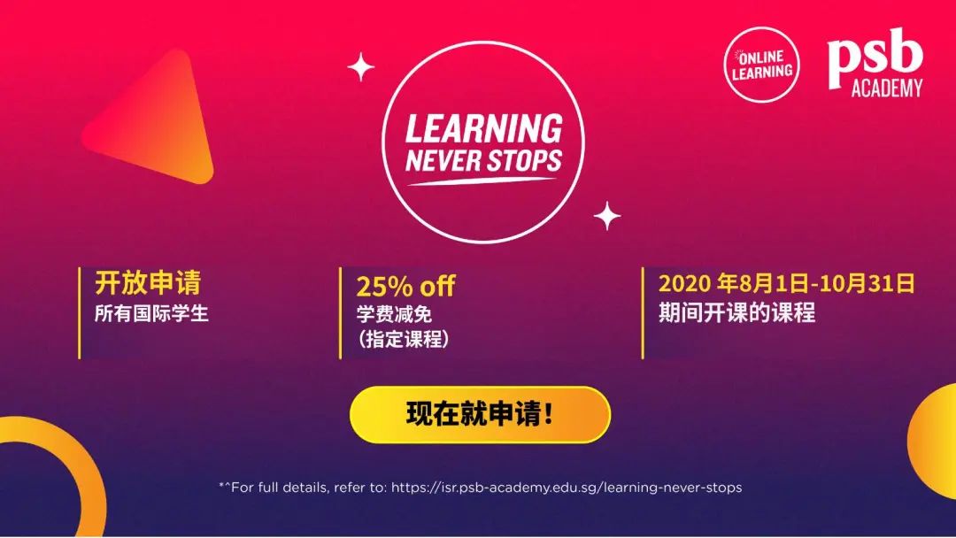 为了鼓励更多的学生去坚持自己的选择,不因疫情停下学习的脚步,新加坡PSB学院特推出重磅300万新币助学金计划*!符合条件的国际学生和新加坡本地学生,都有资格申请!