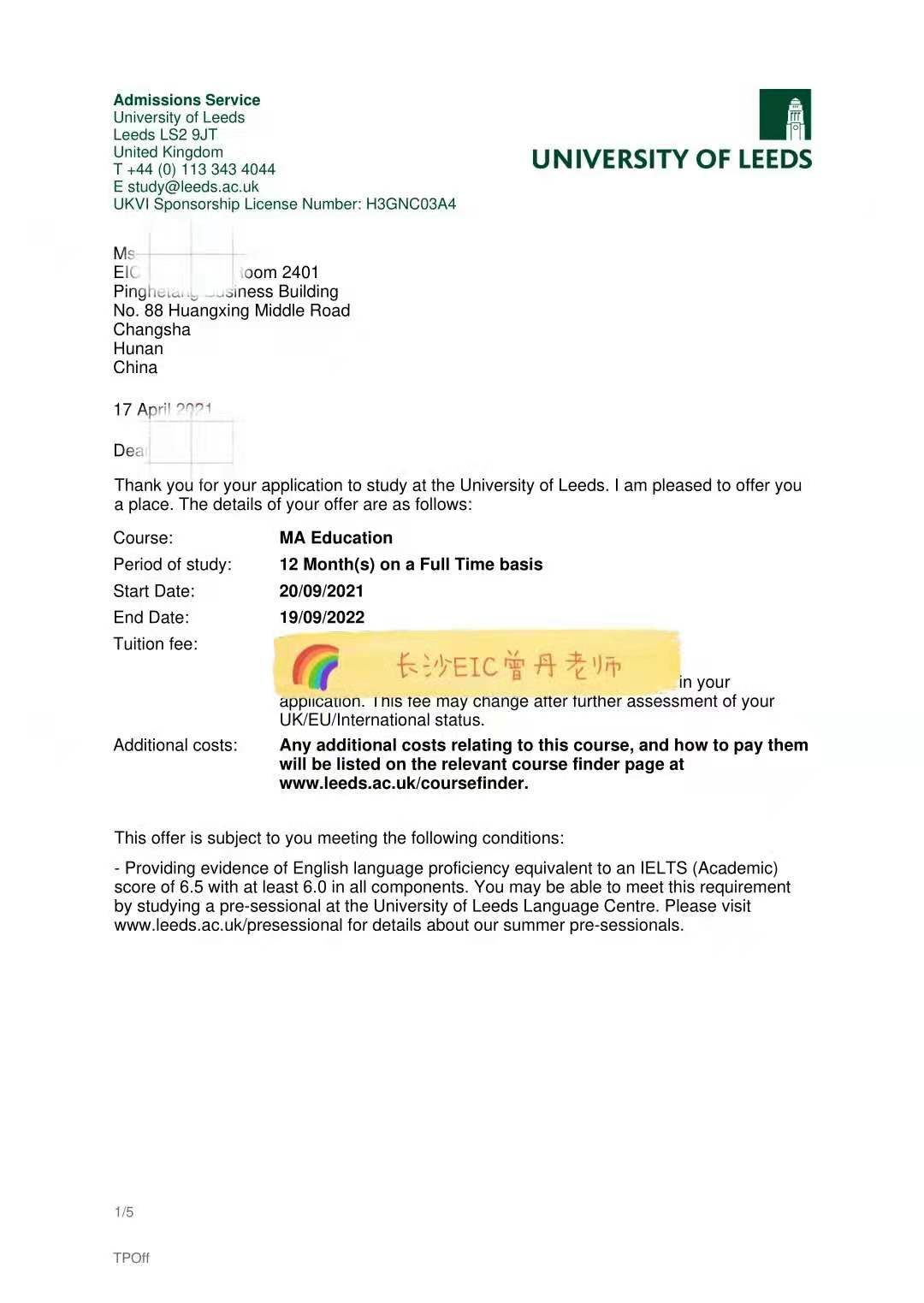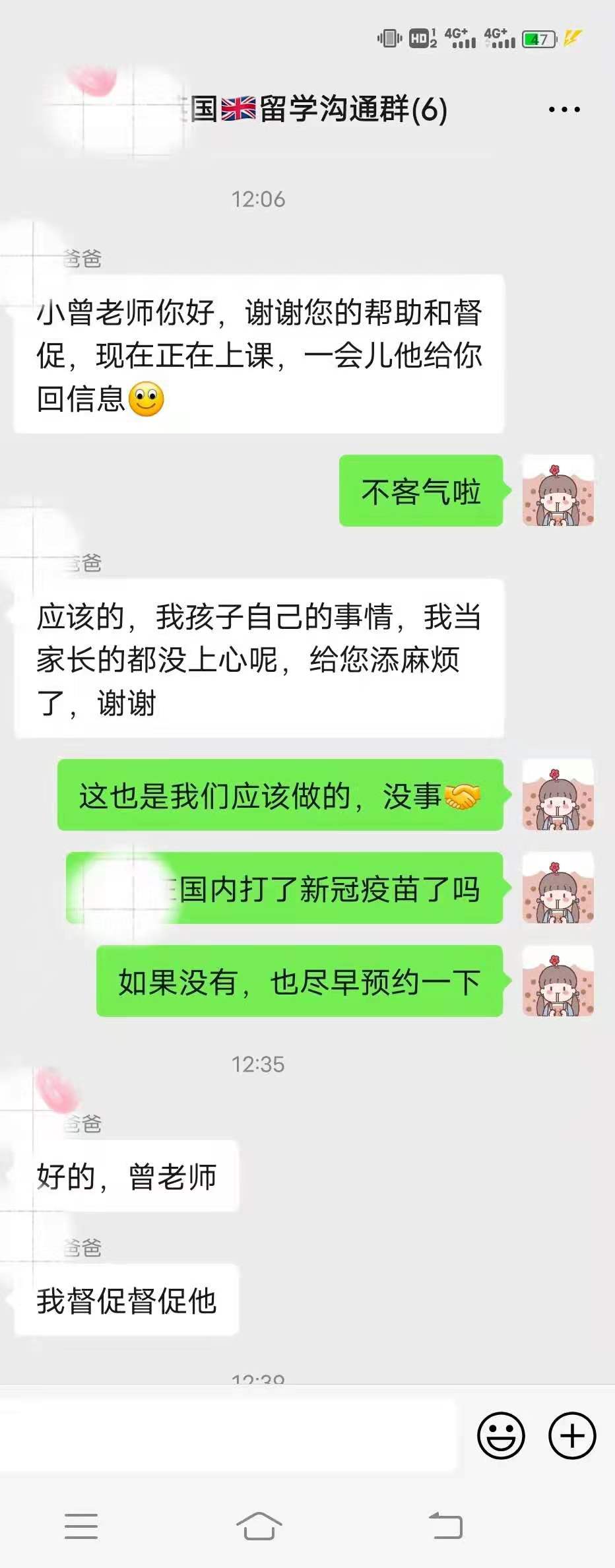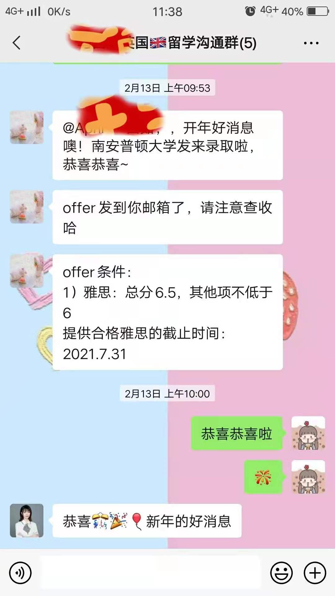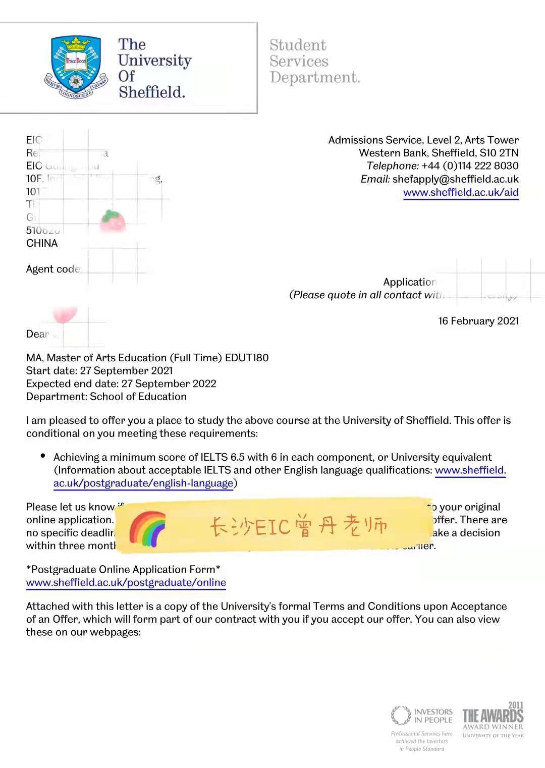 在今年2月份开始陆陆续续收到学校的Offer, 学生和家长也是喜出望外,目前决定去谢菲尔德大学,还在努力刷雅思中。M同学其实跟我年龄相当,也同是英语专业毕业,平时工作也是非常忙碌,但是还是不忘初心,有自己的梦想和坚持,抛开年龄焦虑获得父母的坚持,真正地诠释了:只要你想要开始,什么时候都不晚。好在英国硕士也只需要一年,对于女生还是非常友好,希望这一年的经历,带给你的是整个人生的璀璨。