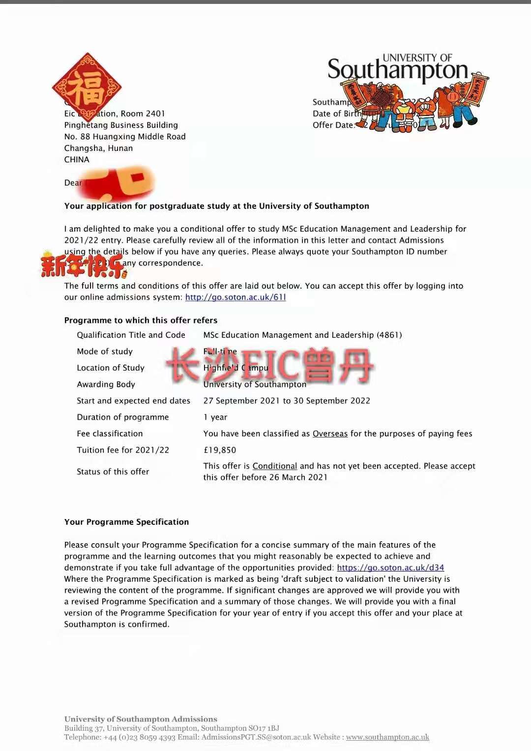 目前成功获得南安普顿大学、谢菲尔德大学、利兹大学的录取。