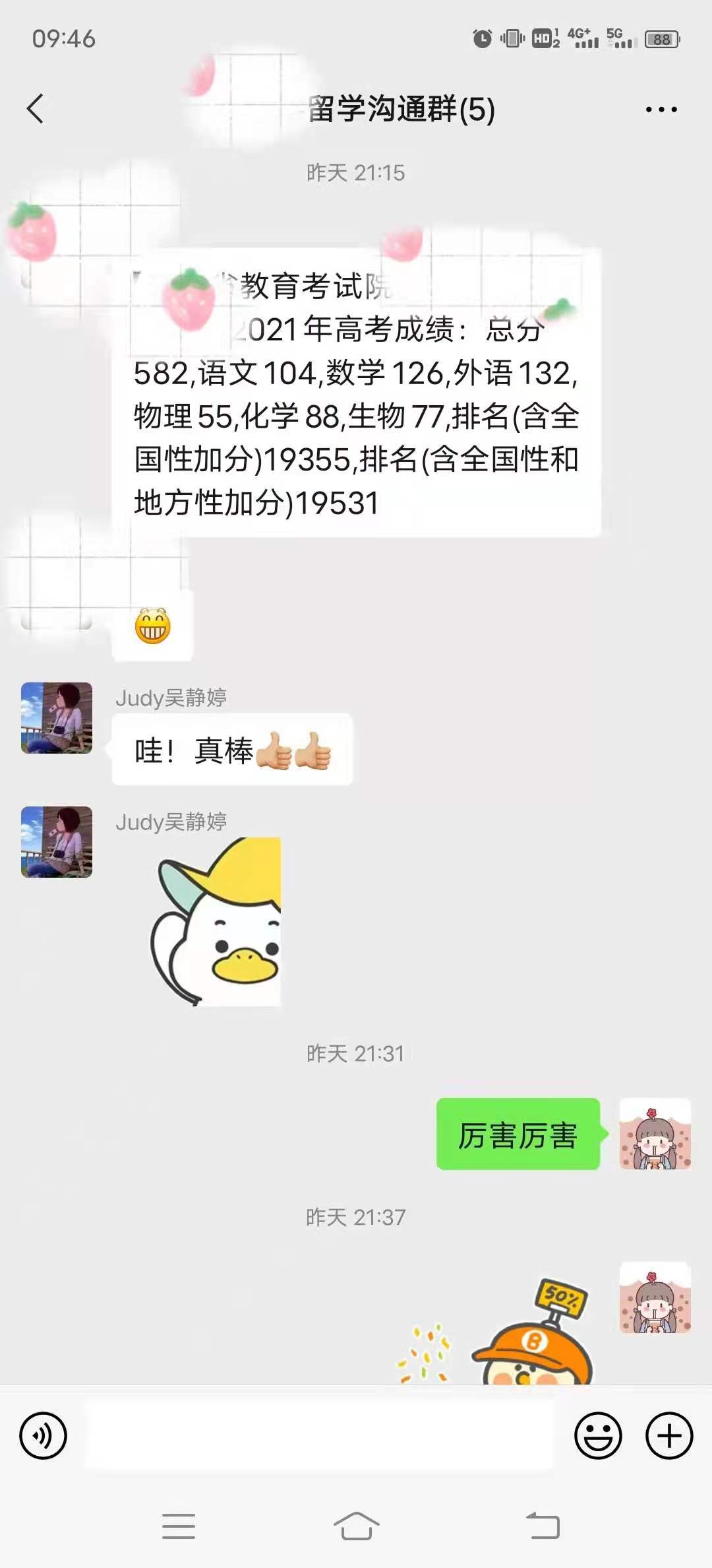 毕业于国内普通高中,高考成绩582分