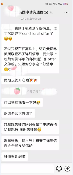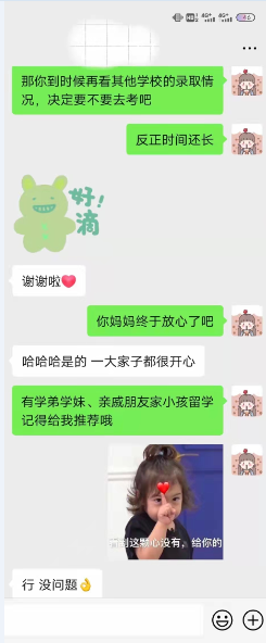 距今将近一年的时间,学生对于我说的任何规划都全力以赴去做配合,最后在递交的时候均分85.9、雅思6.5、两段银行相关的实习、一篇学期论文,对比刚签约时只有均分80.87,我还是佩服她对于目标的坚定以及超强的执行力。诺丁汉大学新的录取要求没有下来之前,我还是不太建议她冲刺诺丁汉,因为均分即使提升了,差别还是比较大。之后随着申请季来到,诺丁汉大学同步更新要求,降低了分数要求到86,果然幸运是会眷顾有准备的人,我们毫不迟疑地选定了诺丁汉大学,在2021年9月28日递交申请,10月2日便收到了录取的好消息。没有辜负她们的托付,我也如释重负了,这是在可申请的院校范围内我们能拿到的最靠前的院校录取了,当然有了这个基础,我们可以毫无顾虑的往前冲啦,期待有更大的惊喜等着我们。