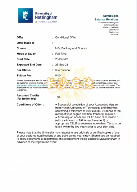 目前成功获得诺丁汉大学MSc Bank and Finance的录取。