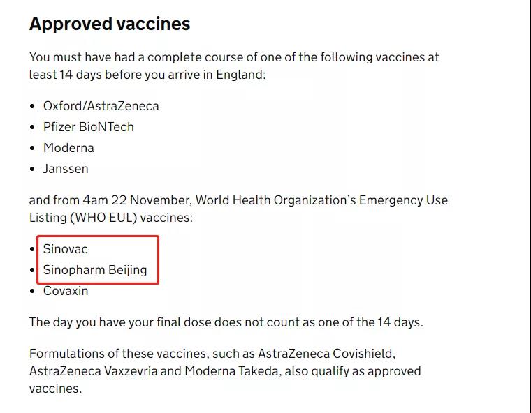 信息来源:https://www.gov.uk/guidance/travel-to-england-from-another-country-during-coronavirus-covid-19#fully-vaccinated