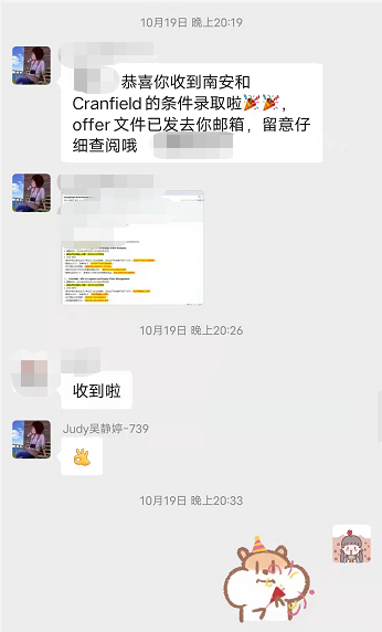 学生之前就在我们启德办理了澳洲的留学服务,并且成功拿到了澳洲意向院校的录取,由于澳洲迟迟没有开放边境,因此学生在临近申请季的时候想要加申英国。学生的性格是我比较欣赏的类型,性格直截了当、逻辑清晰。对于选校这个事情,大部分学生和家长都会比较在意学校的综合排名,而不愿意定专业排名高但综排低的院校。学生在签约之前,对于英国的院校也已经做了部分的了解,对于克兰菲尔德这所学校的专业实力也非常认可,因此在初步沟通中我们就确定了要申请的专业和院校。在递交申请6天后,我们就顺利拿到了南安普顿大学和克兰菲尔德大学的录取,感觉就是一路绿灯到底,非常顺利。