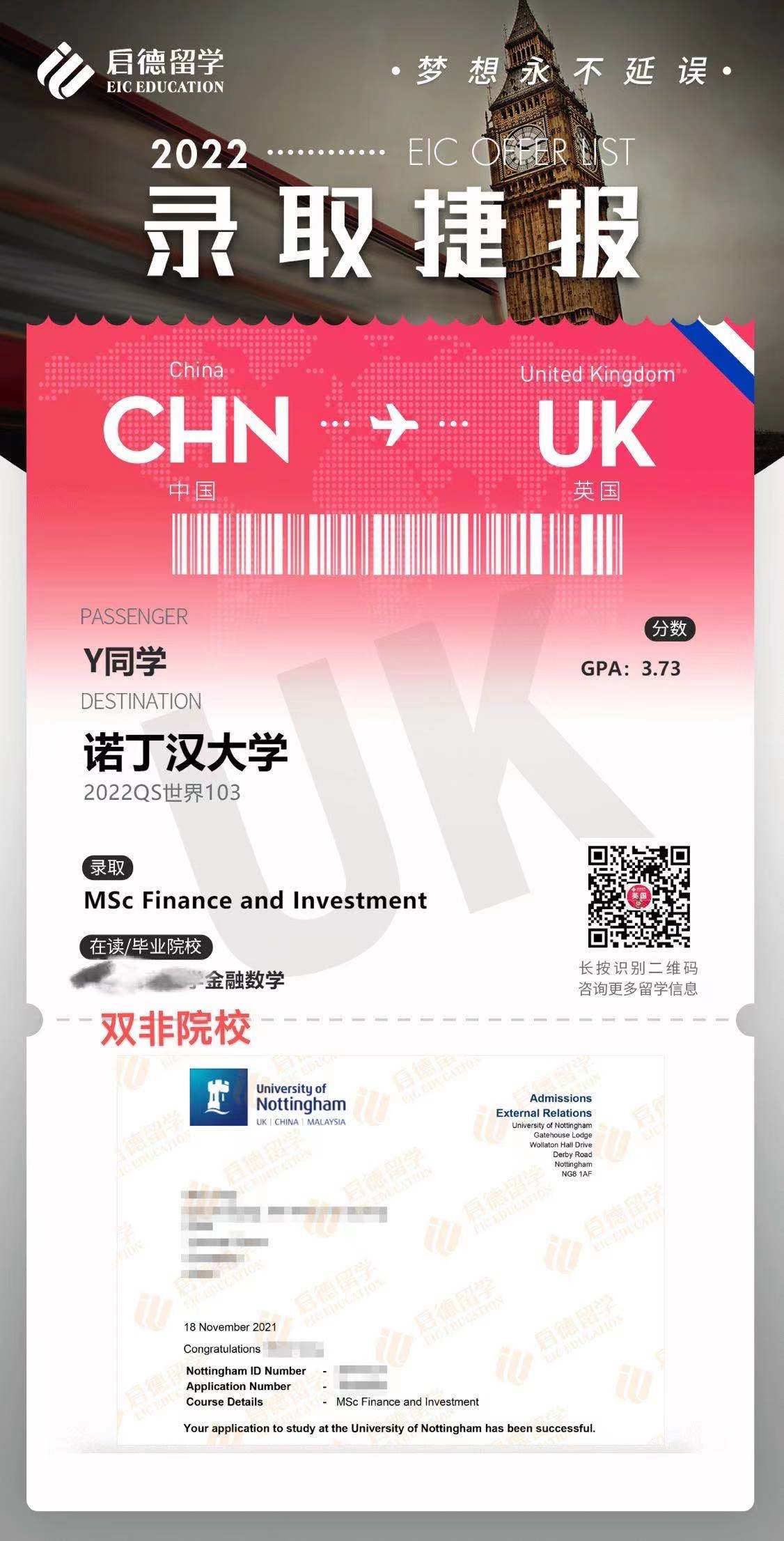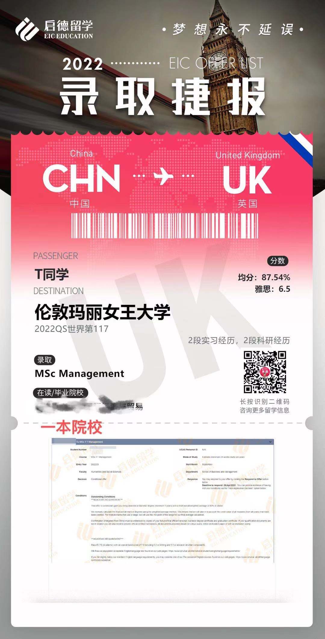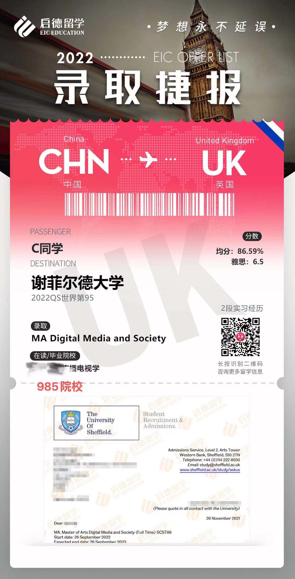 成功案例发一波OFFER展示~2021/12/09/周四 16:50点击量:275英国留学录取捷报案例祝贺我可爱的学生们拿到OFFER!!来一波OFFER展示~更多文章申请攻略英国大学录取标准逐年提高,申请人该如何应对?根据英国高等教育统计局(HESA)的数据,尽管全球疫情对世界造成了影响,但近年来赴英国留学的国际学生数量却稳步上升。英国院校以其高效的学制赢... 查看详情>> 发布日期:2024-02-18 阅读量:151英国留学申请规划背景准备查看详情 在线咨询 留学资讯现在申请英国硕士,还来得及吗???过了一轮申请高峰期,才想起我的博客没更新... 那么英国留学到底应该什么时候去申请?现在申请英国硕士,究竟还来得及吗?我相信不管是对于临时起... 查看详情>> 发布日期:2022-01-26 阅读量:278英国留学申请时间截止日期查看详情 在线咨询 成功案例发一波OFFER展示~祝贺我可爱的学生们拿到OFFER!!来一波OFFER展示~ 查看详情>> 发布日期:2021-12-09 阅读量:275英国留学录取捷报案例查看详情 在线咨询