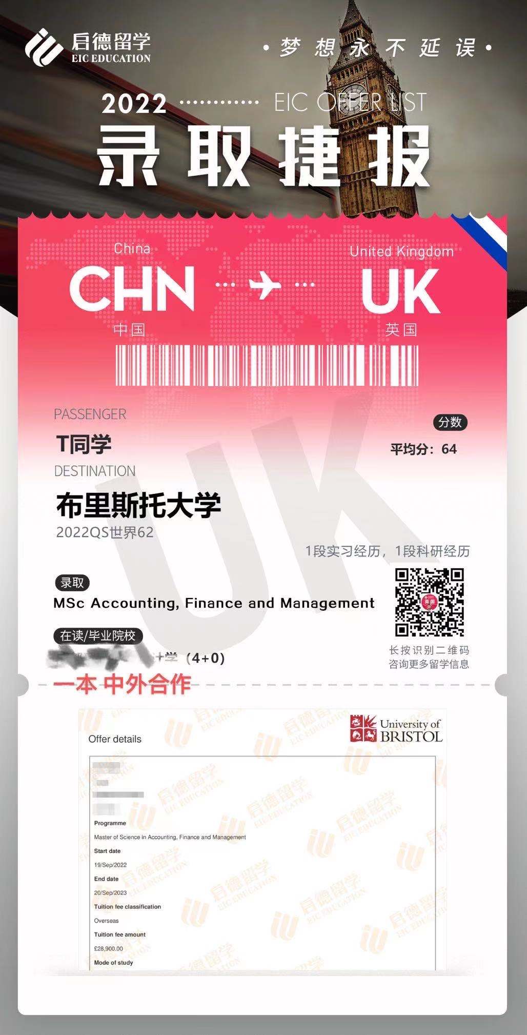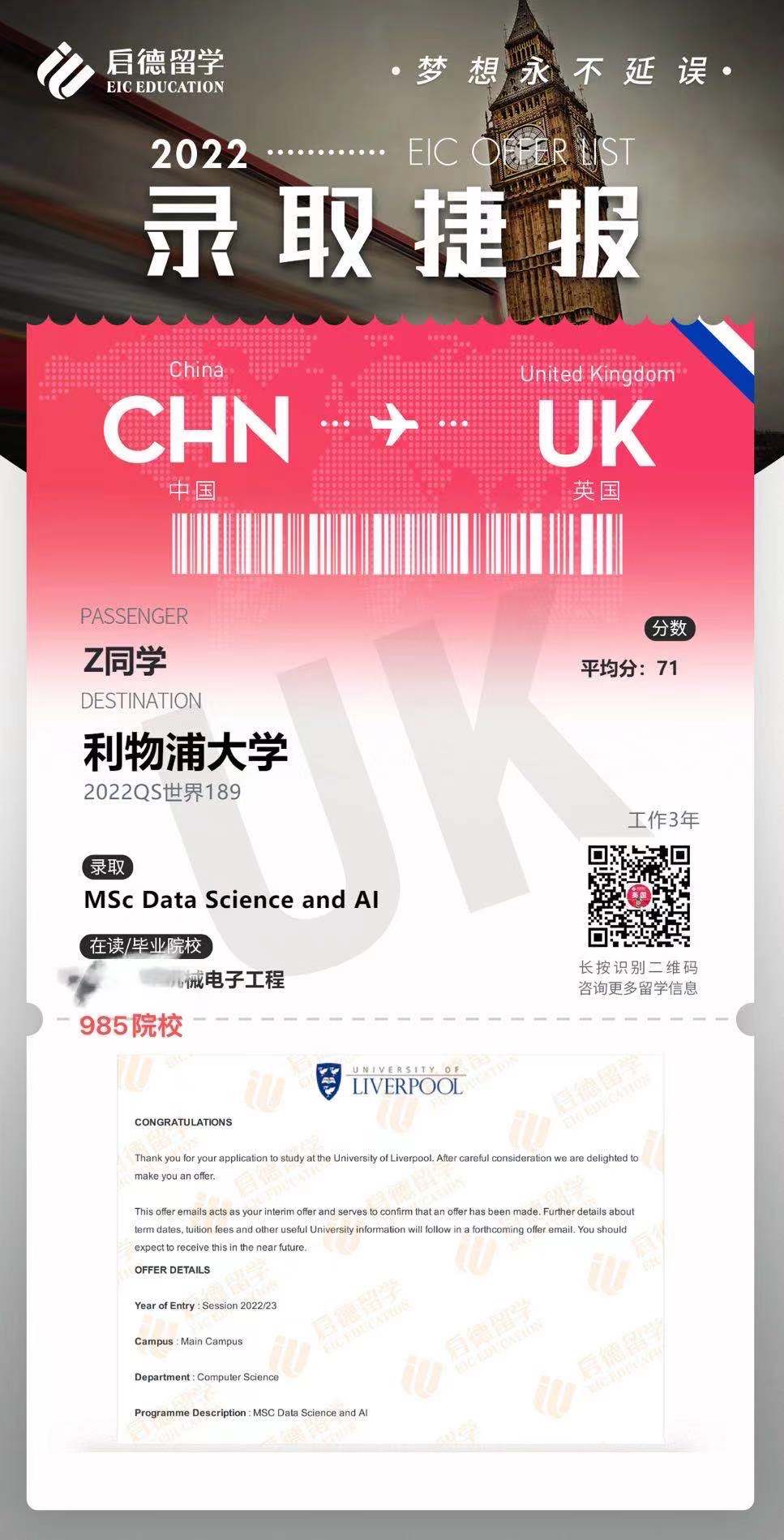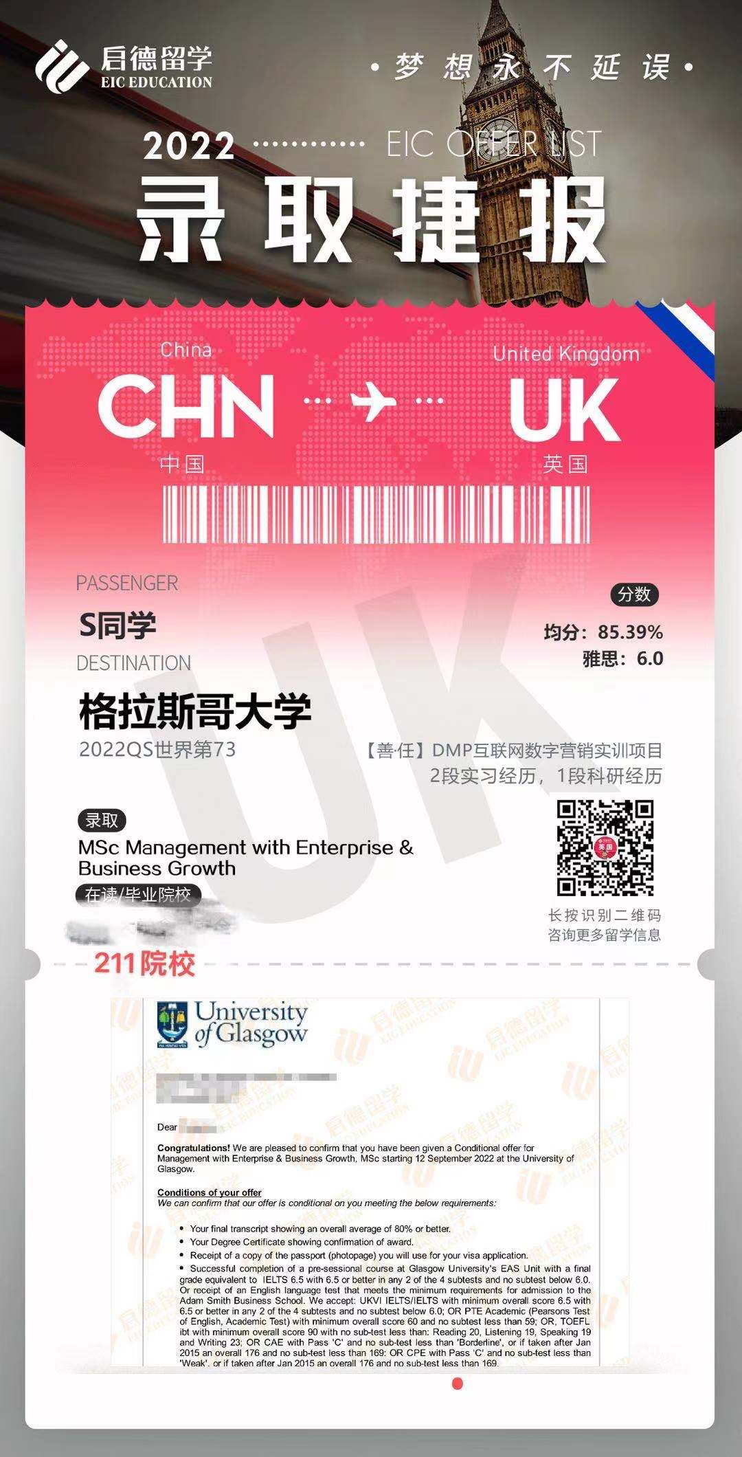 成功案例发一波OFFER展示~2021/12/09/周四 16:50点击量:275英国留学录取捷报案例祝贺我可爱的学生们拿到OFFER!!来一波OFFER展示~更多文章申请攻略英国大学录取标准逐年提高,申请人该如何应对?根据英国高等教育统计局(HESA)的数据,尽管全球疫情对世界造成了影响,但近年来赴英国留学的国际学生数量却稳步上升。英国院校以其高效的学制赢... 查看详情>> 发布日期:2024-02-18 阅读量:151英国留学申请规划背景准备查看详情 在线咨询 留学资讯现在申请英国硕士,还来得及吗???过了一轮申请高峰期,才想起我的博客没更新... 那么英国留学到底应该什么时候去申请?现在申请英国硕士,究竟还来得及吗?我相信不管是对于临时起... 查看详情>> 发布日期:2022-01-26 阅读量:278英国留学申请时间截止日期查看详情 在线咨询 成功案例发一波OFFER展示~祝贺我可爱的学生们拿到OFFER!!来一波OFFER展示~ 查看详情>> 发布日期:2021-12-09 阅读量:275英国留学录取捷报案例查看详情 在线咨询