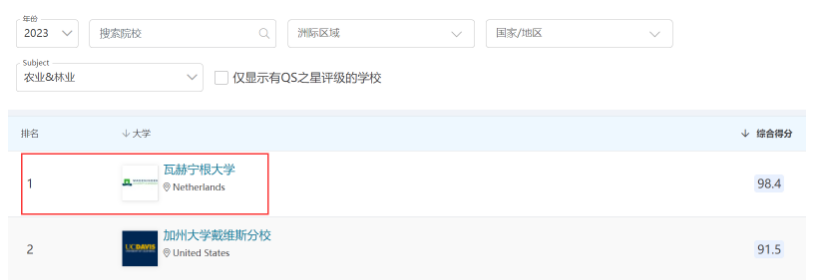 以上图片为2023QS农业&林业学科排名