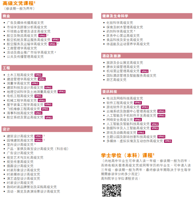 ● 来港就读香港特区政府指定的VTC全日制高级文凭(两年制) 课程(涵盖五大行业共27个课程)