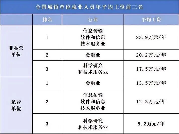 近日,国家统计局发布了《城镇单位就业人员年平均工资情况》,一组数据迅速刷屏——全国最挣钱的三个行业新鲜出炉: