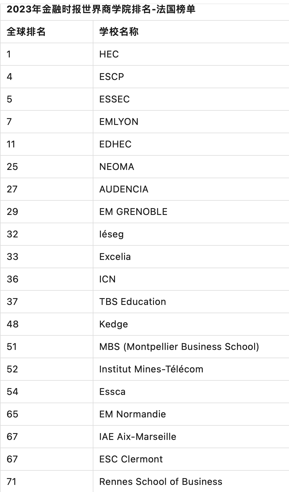 去法国高商无疑是学商科最好的选择之一!近期很多申请英联邦国家失败的学生不要着急,法国入口还有很多可能!来看下世界排名,有很多优质推荐~~