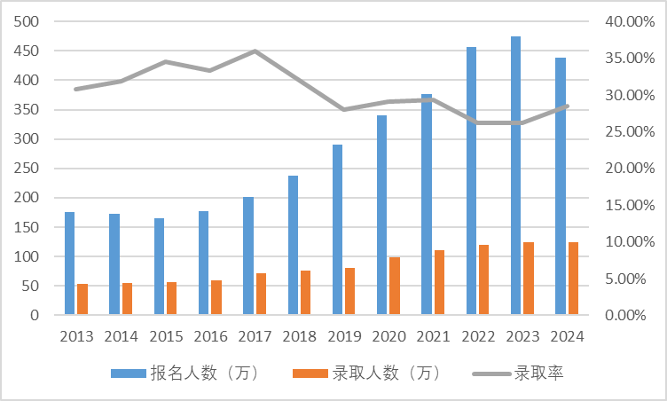 2024年的考研刚刚结束,每年这个时间都是几家欢喜几家忧。据教育部官网消息显示,2024年全国硕士研究生考试报名人数为438万。尽管相较2023年底的数据有少数下降,但整体仍突破了400万大关。