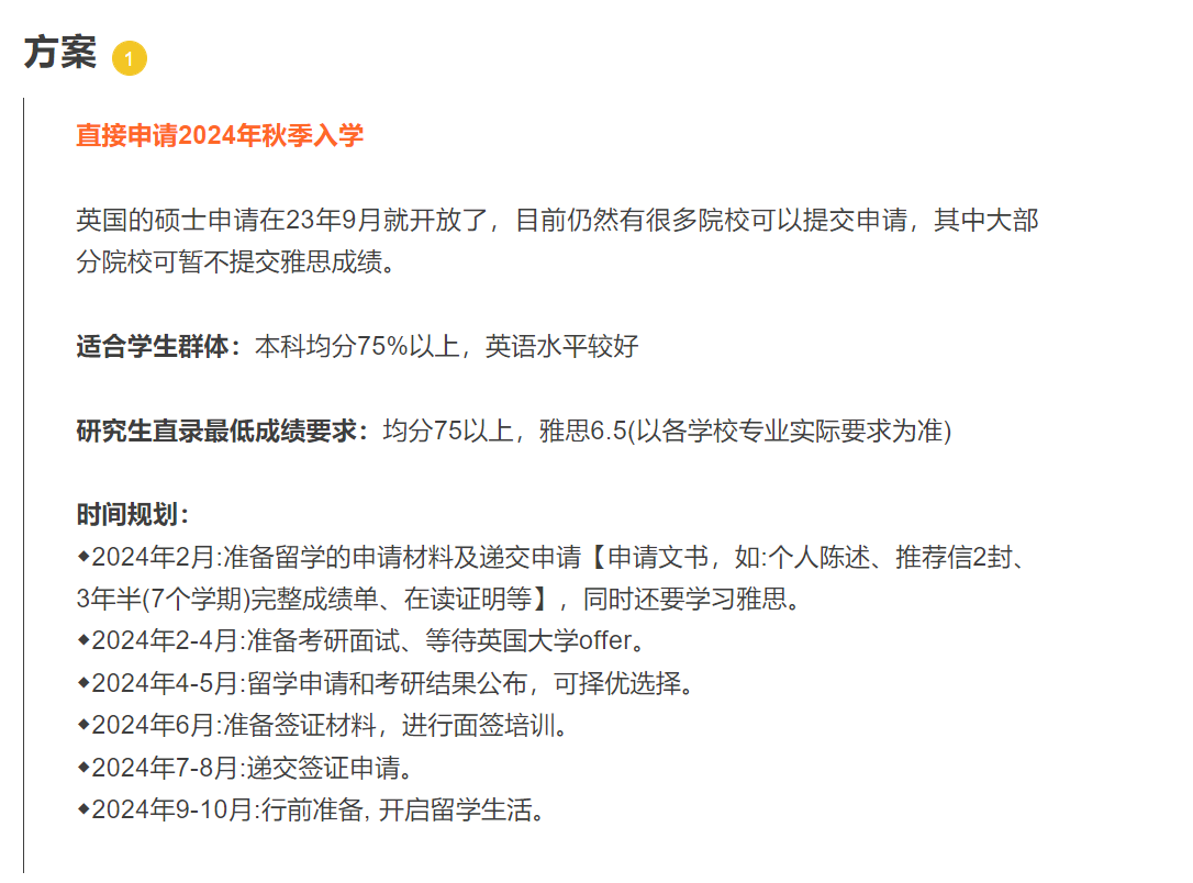每年 1-4月可谓是英国留学的末班车,第一波申请的offer或拒信陆续下来了,学生们现在申请英国留学,可以“踩着第一波申请学生的脚印”前进,借鉴他们成功的经验,或是吸取他们被拒的教训。因此,这段时间属于英国留学申请后黄金时期。