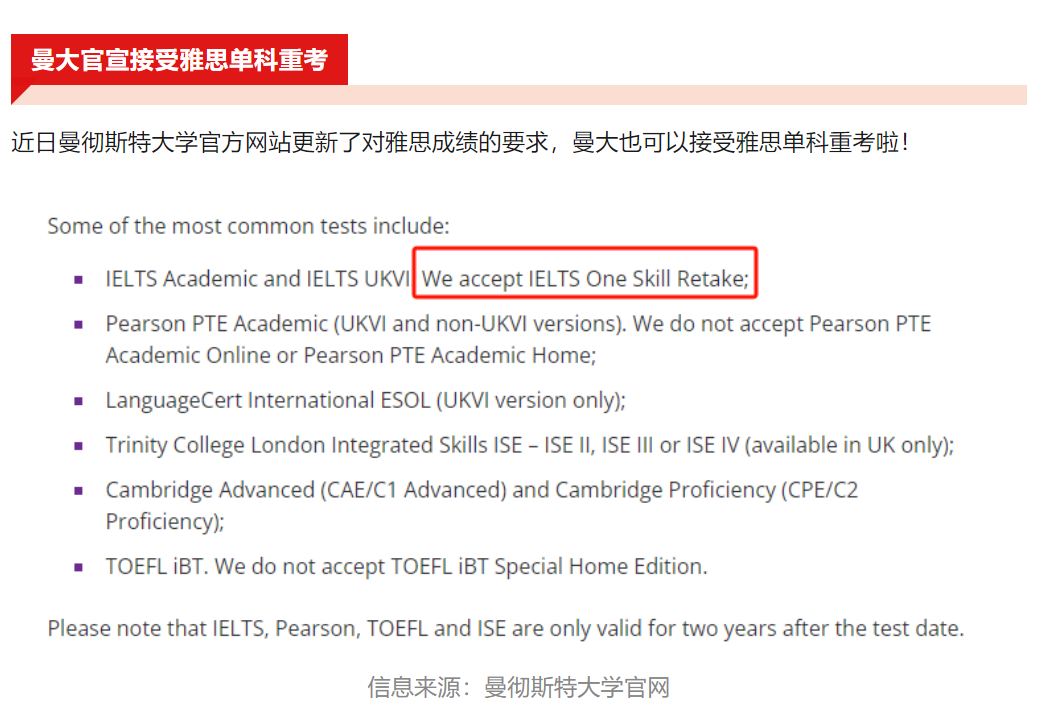 曼大官宣接受雅思单考重考!还有哪些大学也可接受?