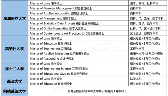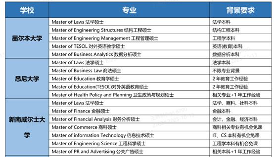 总结:法学硕士:Master of Laws 所有学校全部都是一年制的,读法学专业的可以考虑澳洲留学 除此之外:商科、工程、计算机、教育专业也都有