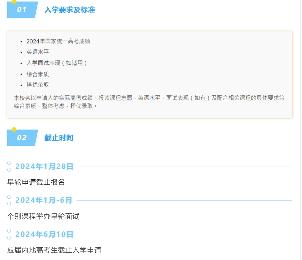 2024年度内地本科生入学计划申请截止日期为2024年6月13日。