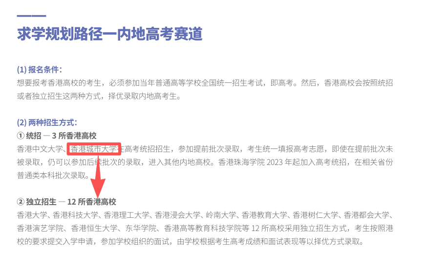 港城大是港八大中唯二参与高考统招的高校,另一所参与高考统招的院校港中文,官网依然显示通过高考统招招收内地高考生。